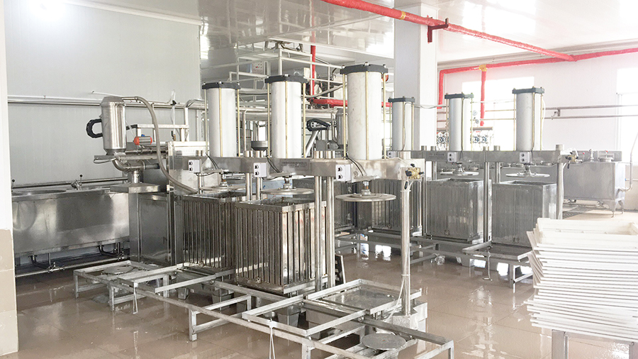 我國的豆制品特別是豆腐的生產(chǎn)技術(shù)歷來是師徒相傳,生產(chǎn)時只知其然,不知其所以然,缺乏科學(xué)理論作依據(jù),不能做到工藝標(biāo)準(zhǔn)化。因此,長期以來在工藝上的改革不多,進展不快。比如,在生產(chǎn)過程中都要經(jīng)過浸泡、磨碎、過濾、煮漿、凝固和成型等幾道工序。而其中凝固這道工序,是通過凝固劑的作用將溶膠狀的豆?jié){轉(zhuǎn)變成凝膠狀的豆腐花,俗稱“點花”和“點漿”,這是生產(chǎn)中的關(guān)鍵工序。然而,采用何種凝固劑