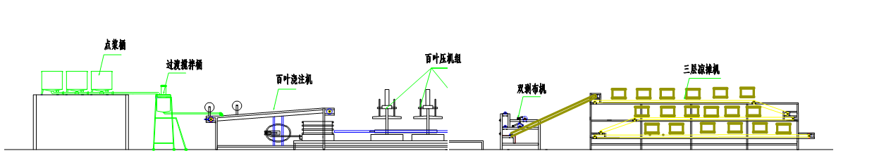 本生產線由豆腦輸送管線、即時破腦澆注機、自控壓機、剝布機、攤涼機等組成。整個工藝過程是:豆漿由凝固機小桶點漿凝固成豆腦,再由輸送管線不破腦輸送到破腦器進行即時破腦即時澆注折疊,從而達到傳統手工效果,出品率高,韌性好。