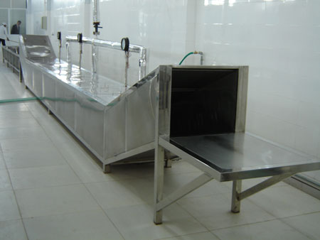 型號:DXC-1型外形尺寸:11000×800×1300mm容積:4500L設備簡介:用于將封裝完畢的液體內酯豆腐加熱成型及巴氏滅菌。采用不銹鋼制造,槽體雙層設計,中間層填充特殊保溫材料,槽內配有蒸汽加熱裝置,加熱保溫,降低能耗。可根據產量定制大小
